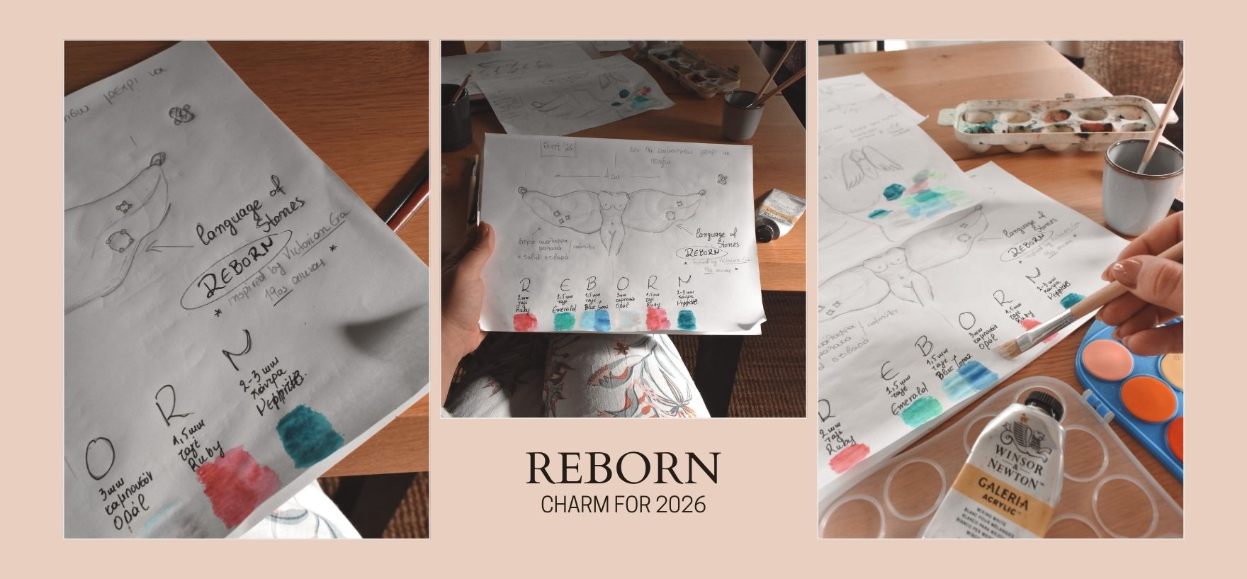 Κάθε γράμμα της λέξης REBORN αποτυπώνεται μέσα από την ονομασία ενός λίθου: